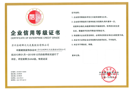 企業(yè)信用等級(jí)證書AAA級(jí)