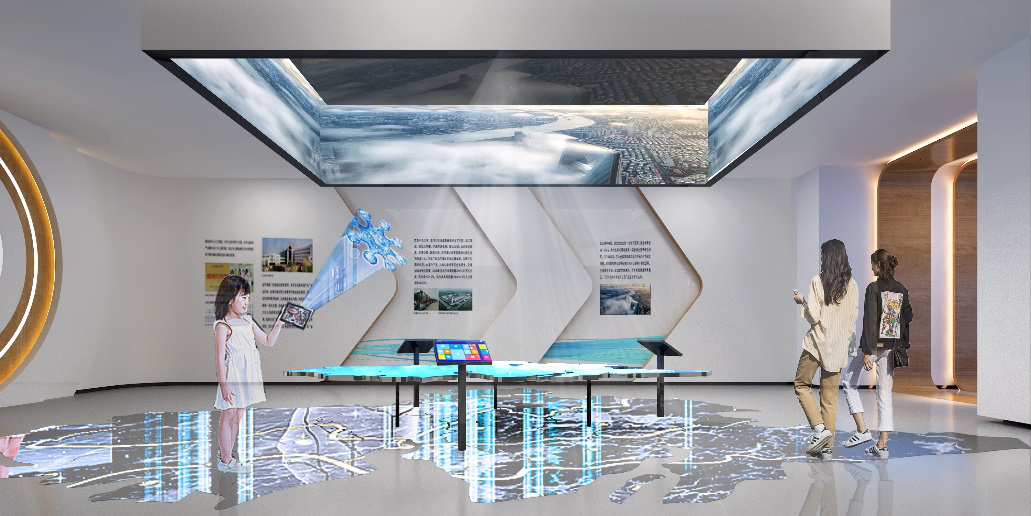 展廳將展示內容與公共空間有機融合,將展線融入到整個辦公空間之內,以移動滑屏、透明屏、混合現實互動、隔空互動等多種展示方式,全方位詮釋長三角一體化發展戰略的政策與具體實施方略。